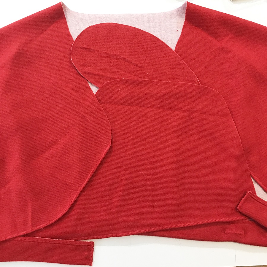 para além das linhas de desmanchar os bolsos, o que sobra da transformação de numa saia de lã numa UP sweater é muito pouco.
