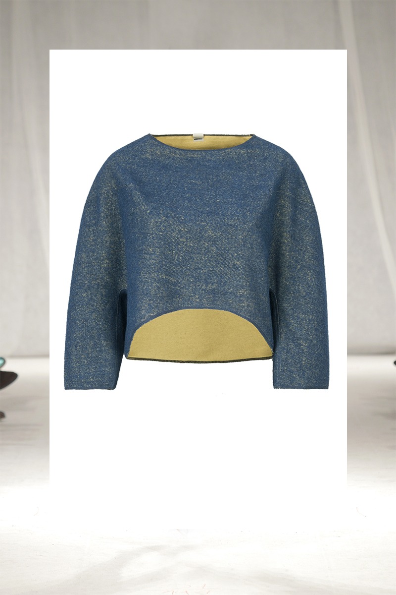 Short length with double-sided knit with cotton inside and wool on the outside.